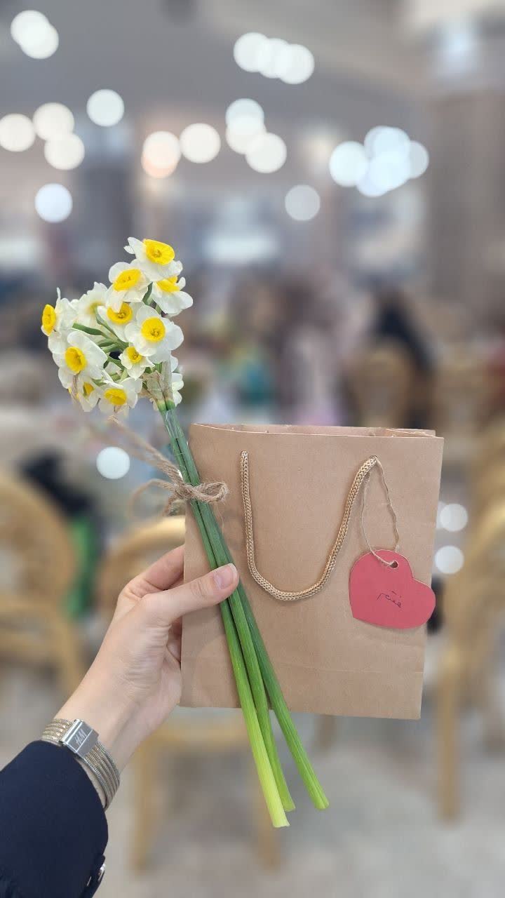 سپس هدایایی که موسسه مهر تابان مهدوی آماده کرده بود به همراه یک شاخه گل نرگس به دختران داده شد و آنها نیز با دست بوسی مادرانشان هدایا را به آنها تقدیم نمودند.